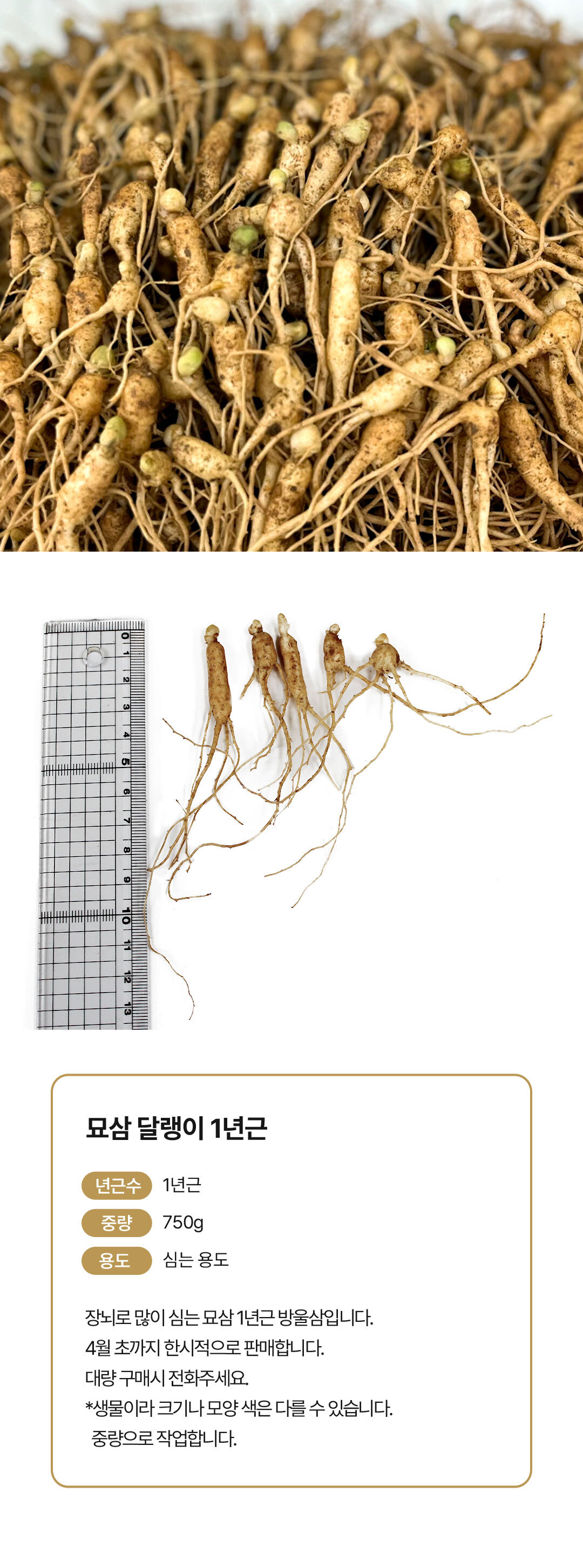 묘삼달랭이(방울삼)1년근(750g)